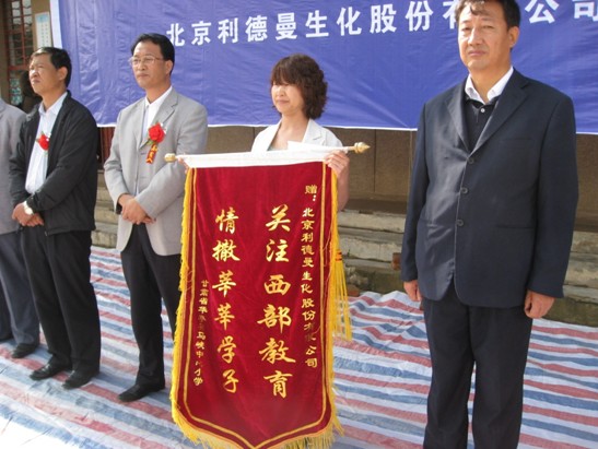 马峡,甘肃—— 2010年9月7日,乐动在线向甘肃省平凉市华亭县马峡中心小学无偿捐赠了价值十万元的钢木课桌椅。乐动在线副总经理张雅丽、华亭县县委常委、副县长徐德才、华亭县教育局局长陶玉宏等出席了捐赠仪式。马峡中心小学校长杜安平向乐动在线(中国)公司赠送了锦旗,表达感激之情。
